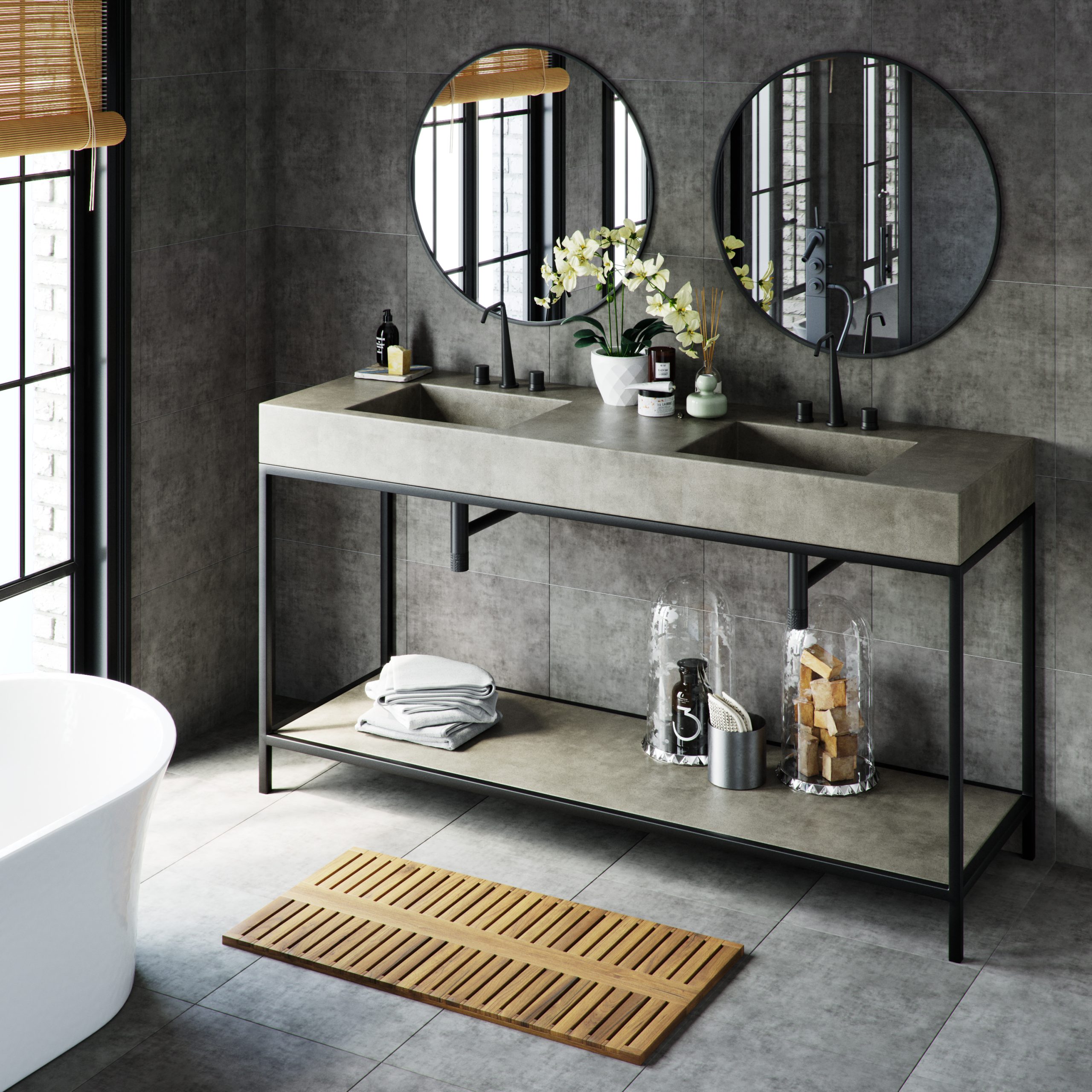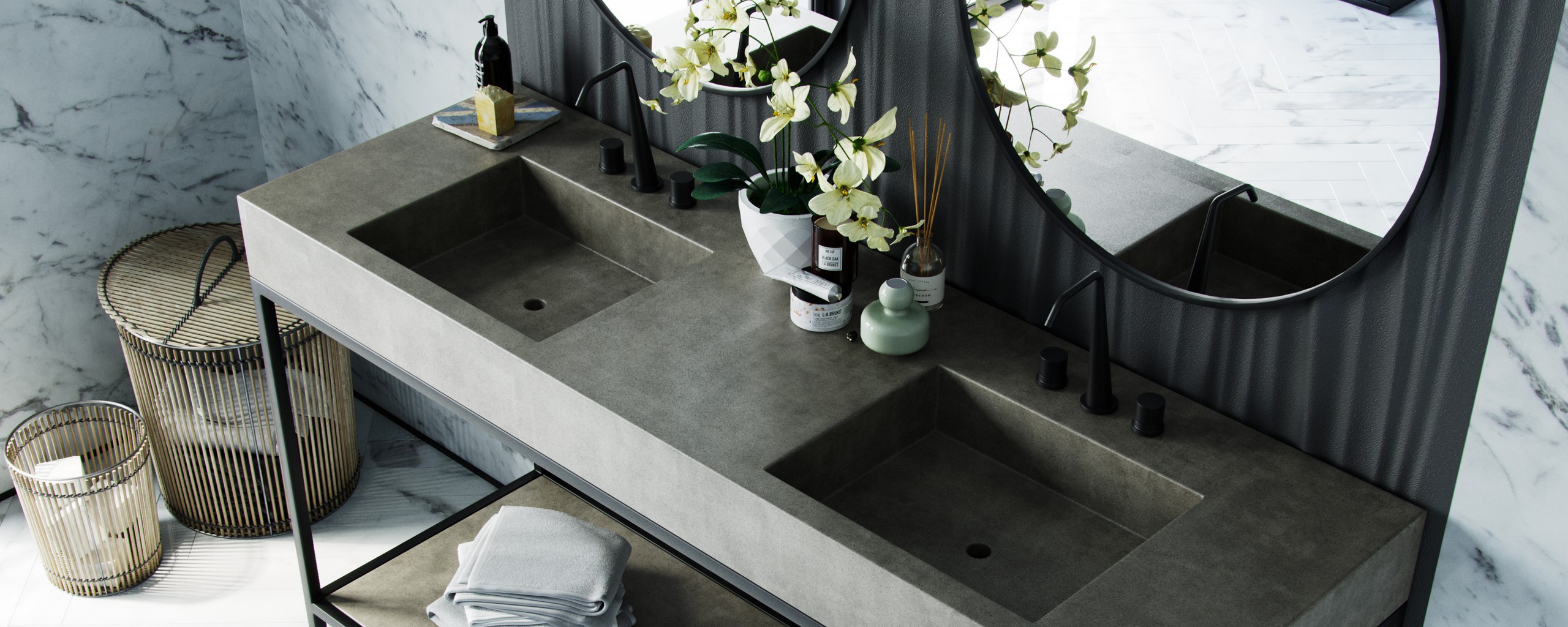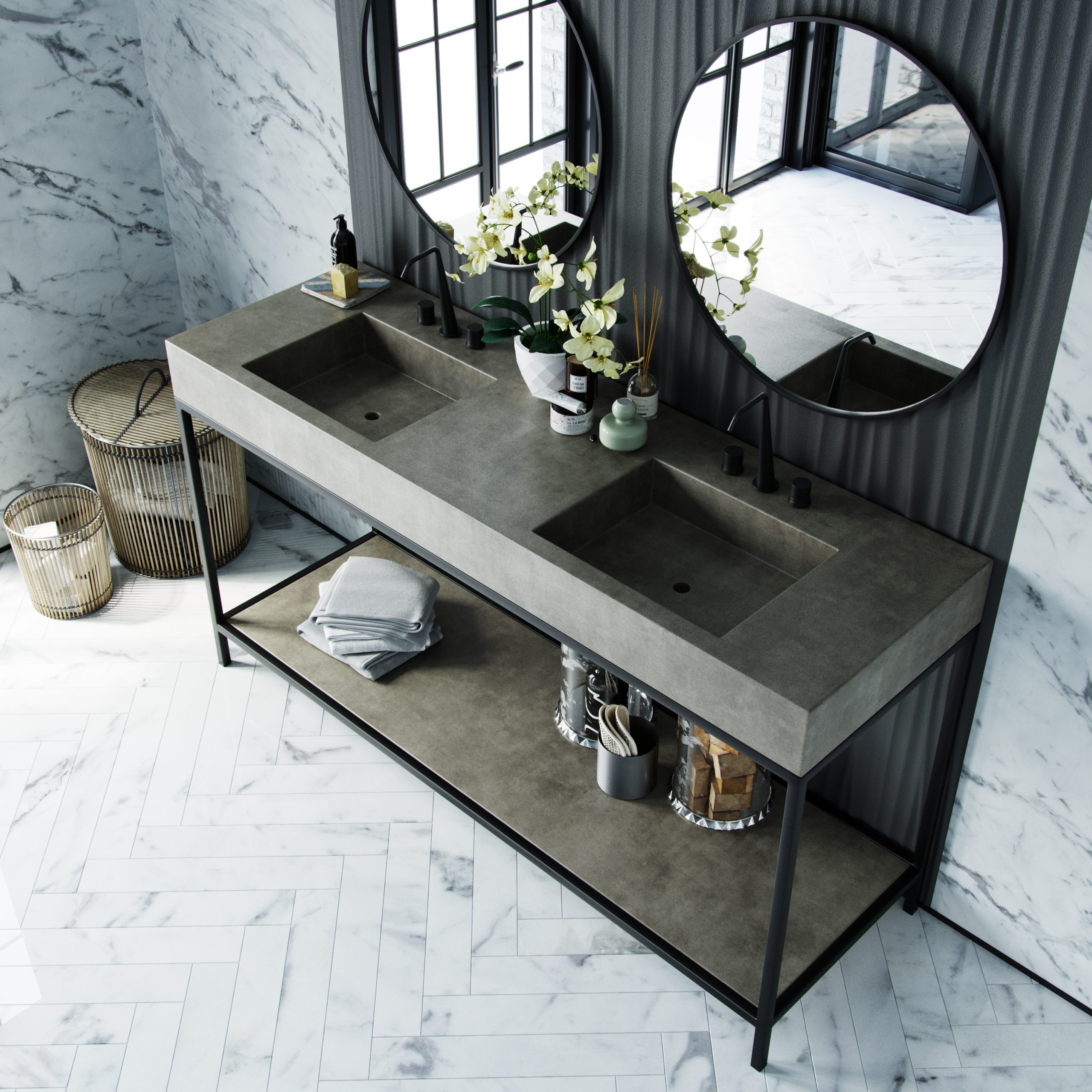 Get your hands on this handcrafted concrete sink. With a modern design and two sinks, it’s the perfect addition to any bathroom. The custom concrete adds a unique touch to your space.